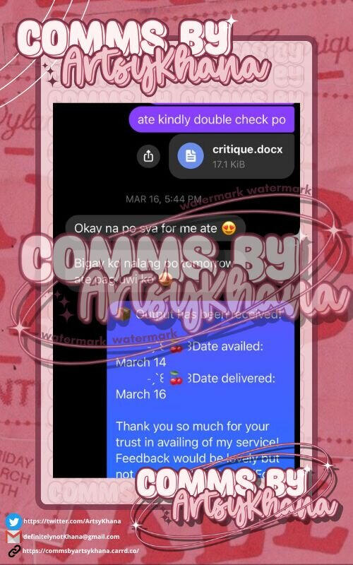 (1 day = 60%, 2 days = 30%)εїз The deadline's time will automatically be set at 11:59 pm if the client does not complete the given form.εїз I am not liable for any incomplete instruction, criteria, or basis if you missed sending it to me before I did the output. Additional charges will be added for that.εїз Revisions that are not stated in the instruction will have additional fees.εїз For graphic works, additional 150php for the raw file. (canva link, psd, etc.)εїз I will only provide 1-2 free minor revisions valid for 12h only, following revisions will have an additional fee.