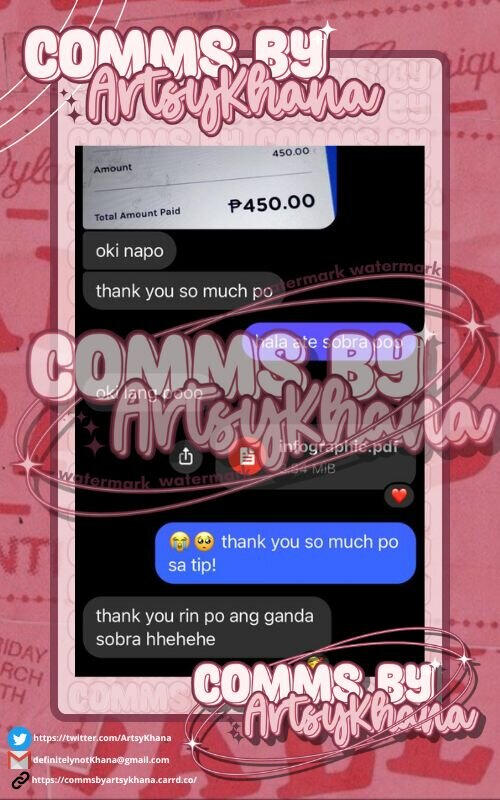 minor revisions: font size, resizing of vector/s, font changeεїз No refund nor return policy once we made agreement.εїз A cancellation fee of 50% will be charged for canceled outputs, both started and pending.εїз After 2 days, I'll delete the raw files for graphic worksεїз All works must be personal only. Otherwise, for commercial outputs, additional 50%εїз If you don't want me to post your commissioned output in my portfolio, additional of 50 pesos.εїз I am not liable if you did not read my rules. By filling up the form and paying, you acknowledge and respect my rules and wish to proceed.